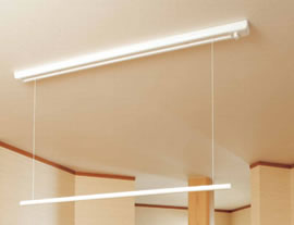 天井からの出っ張りを抑えたデザインと、 竿の収納により見た目もスッキリ。