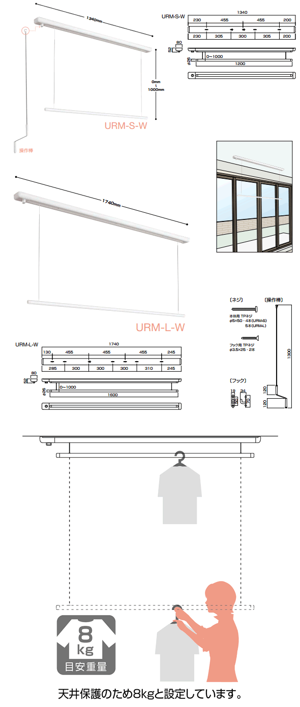 昇降時は操作棒をくるくる回すだけの簡単操作。使わない時は操作棒を取外して見た目もスッキリ。
